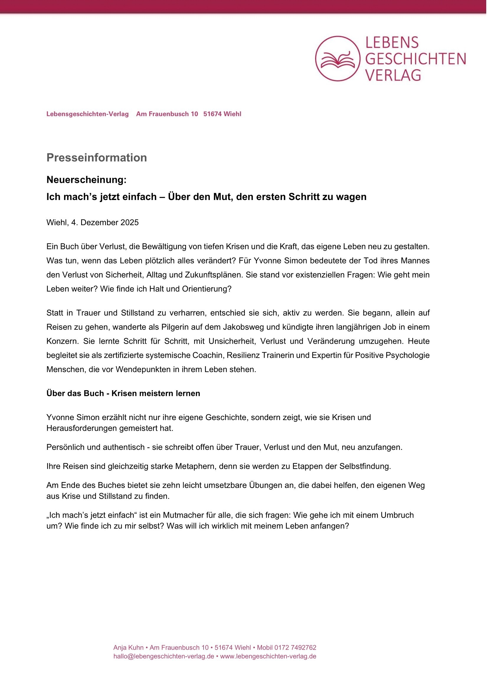 PI: Neuerscheinung: Ich mach´s jetzt einfach von Yvonne Simon